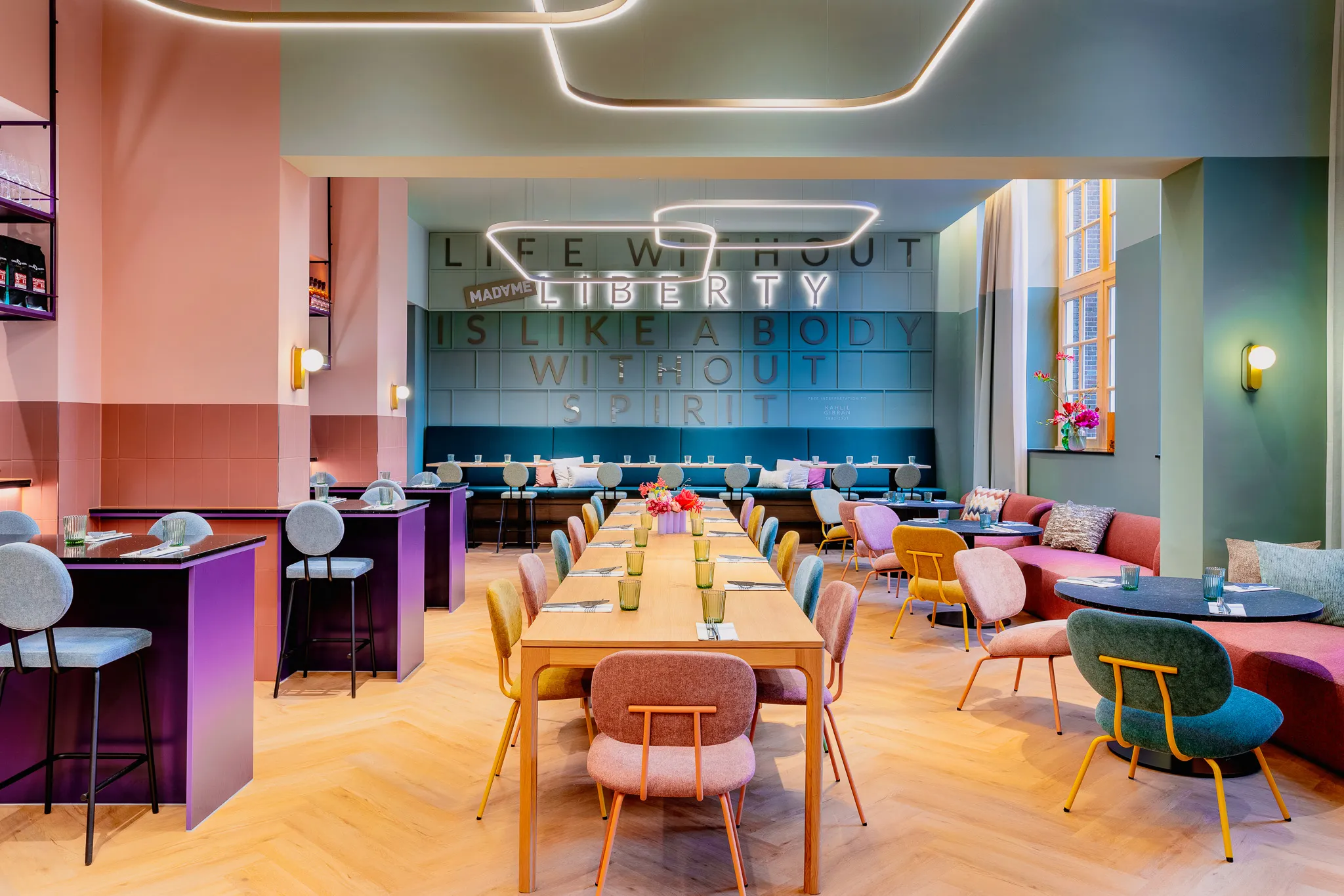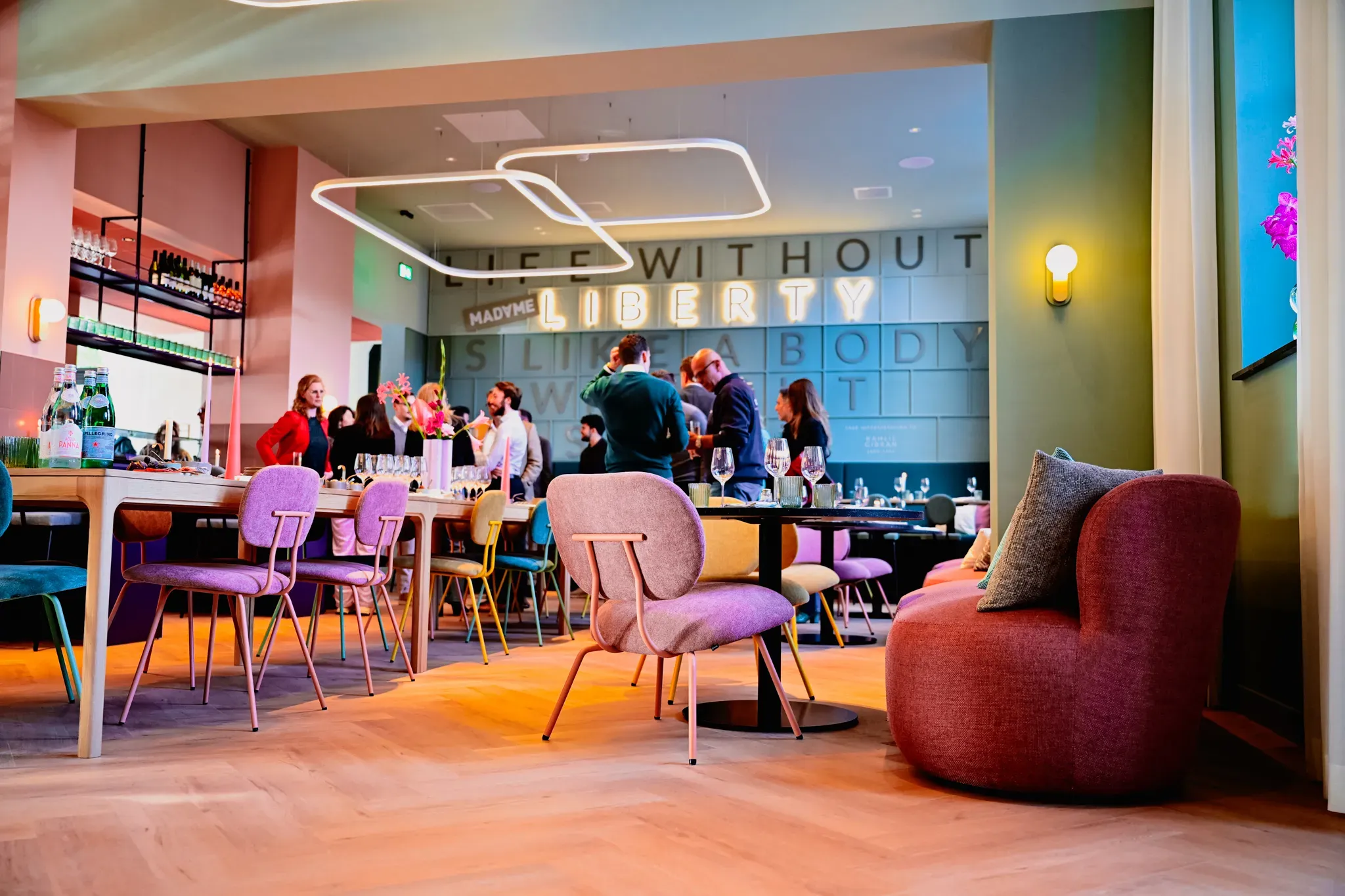 Stap binnen in het restaurant, waar levendigheid, verrassingen en het vieren van het moment samenkomen. Bij ons draait het iedere dag van de week om ongedwongen genieten. Laat je verwelkomen door de geur van versgezette koffie en een heerlijk ontbijt om je ochtend goed te beginnen. Of neem even de tijd om te ontspannen tijdens een smaakvolle lunch, perfect om bij te praten of nieuwe energie op te doen. Sluit je dag af met een diner in een warme, sfeervolle setting bij Madame Liberty, waar aandacht voor smaak en gastvrijheid vooropstaat.